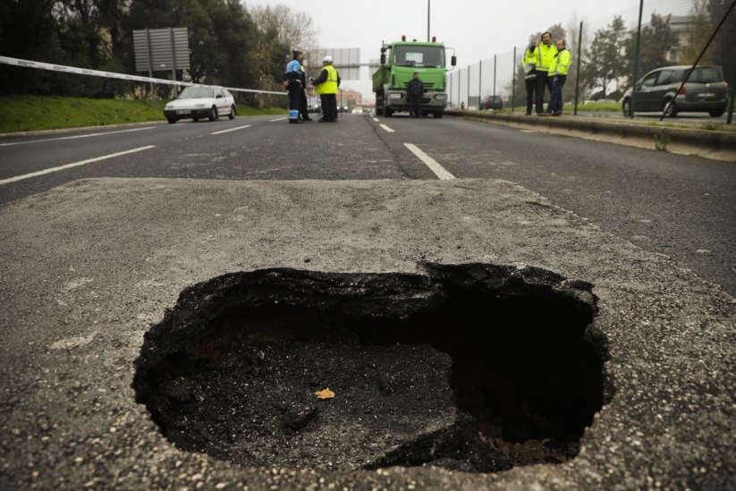 A cratera que se abriu na manhã desta sexta-feira, na Avenida Padre Cruz, Lisboa LUSA/MÁRIO